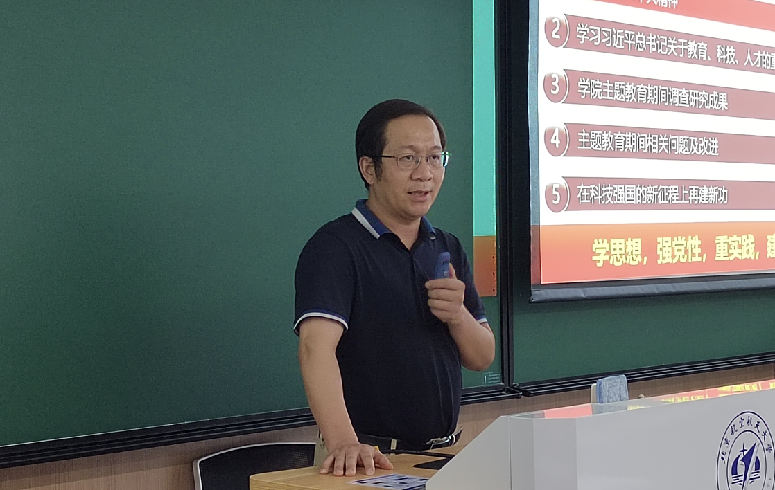 为落实“学思想、强党性、重实践、建新功”的主题教育总要求,深入学习贯彻习近平新时代中国特色社会主义思想,7月3日下午,williamhill中国官方网站党委在学院路校区主南201教室召开主题教育专题党课并对全体教职工党员进行了党风廉政及全面从严治党教育,学院党委书记郭洪波以《加强一流学科建设,构建空天报国“大思政”格局,推进新时代人才培养高质量发展》为题进行讲授,全体教职工参与党课学习。会议由学院党委副书记图们主持。