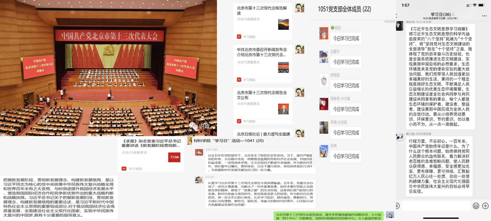 本周学习日活动内容为“体会北京党代会精神,感受时代发展脉搏”,学习活动通过参加会议、参观博物馆、线下研讨、线上分享等形式展开。