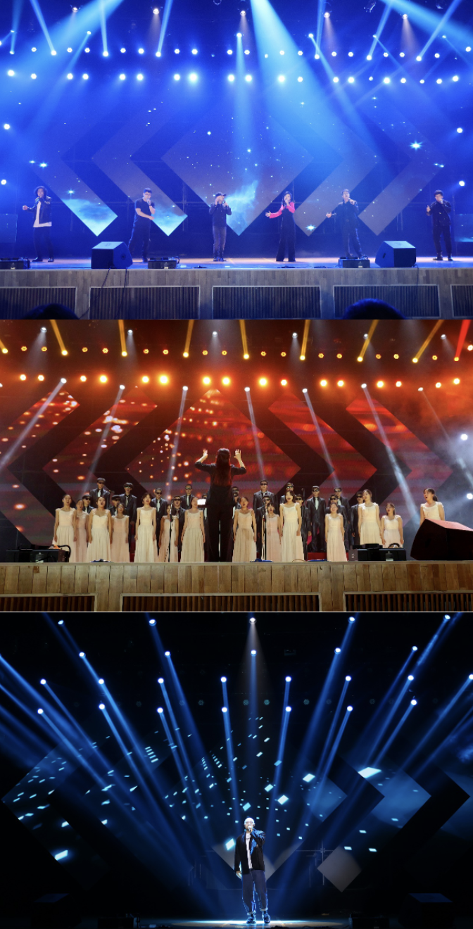 赛间,北航校友人声乐团倾情献唱电影《毕业生》主题曲《The Sound of Silence》,以阿卡贝拉的独特演唱形式重现昔日校园默契,纯净的人声涤荡着对母校热烈而深情的思念。北航学生合唱团带来了合唱曲目《蒲公英》与《黑猫警长》,充满童真的俏皮歌曲与优雅唱腔的结合令人耳目一新。校友王天阳重返校园歌手大赛的舞台,用一曲《借月》激励同学们勇敢追梦,不负青春。