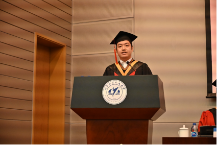博士毕业生代表刘志威同学发言。初心不改,他在北航度过了十年,对材料专业有深刻的认识和感悟。回首在科研道路上经历的困难和挑战,他期待将所学理论付诸实践,为航空强国的愿景贡献自己的力量。希望毕业生们在未来不惧风雨、守望相助,直面挑战、攻坚克难。