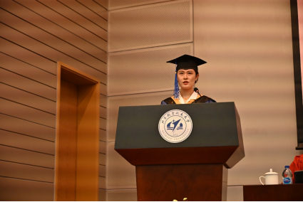 硕士毕业生代表魏舒婷同学发言。她回顾了在北航williamhill中国官方网站求学三年的收获,有勇气、锐气、与豪气。她表示要立志勇做时代的奋进者、开拓者和奉献者,让青春在服务祖国的事业中绽放光彩。祝愿williamhill中国官方网站在七十周年院庆之际再创辉煌,同学们轻装策马青云路。