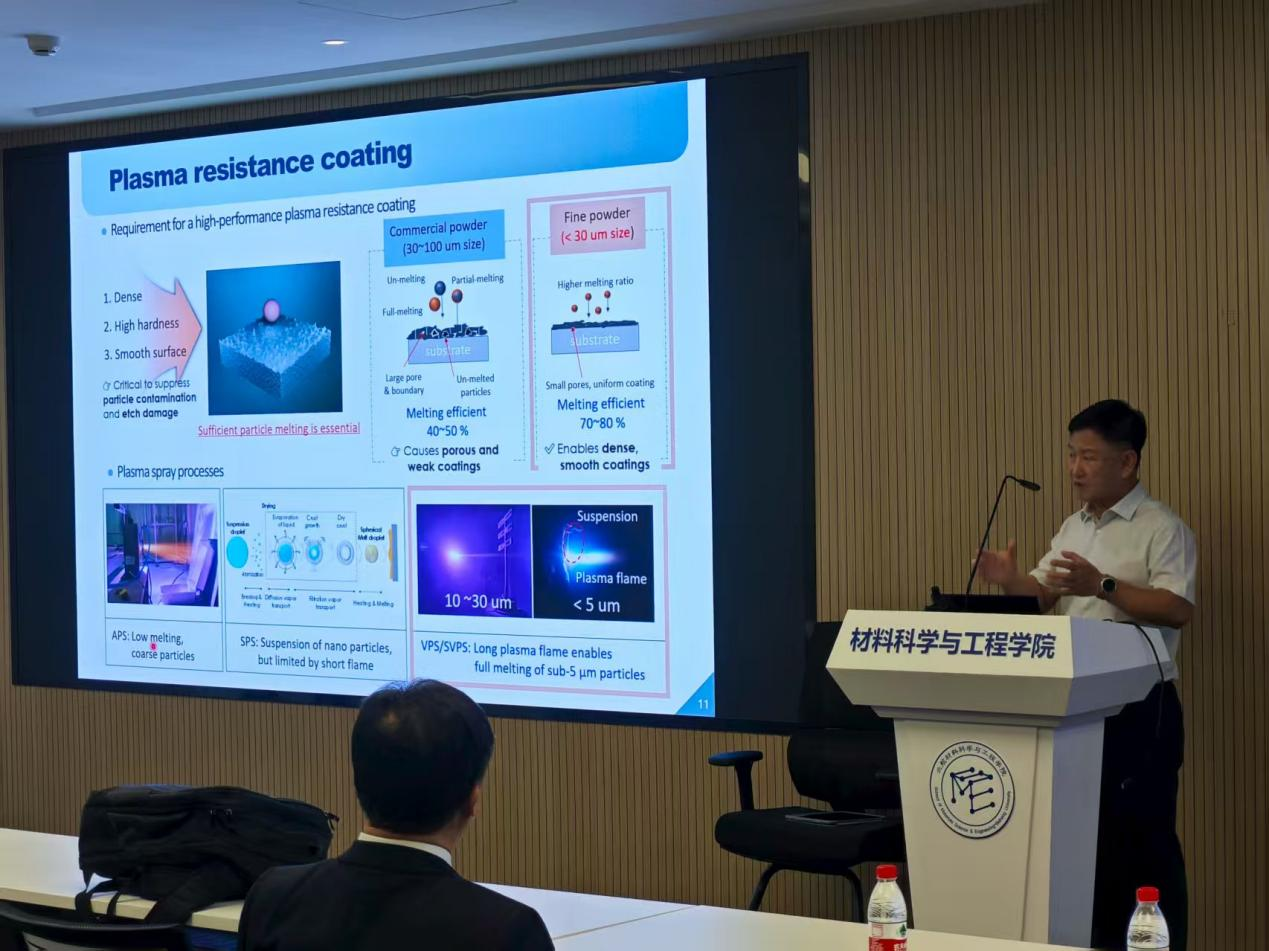 Byon Eungsun教授首先介绍了韩国材料研究院的发展历史、组织机构、人才培养、学术交流等基本情况及研究院在热喷涂领域的贡献及最新的研究进展。随后,Byon Eungsun教授围绕真空悬浮等离子喷涂技术在制备抗等离子体烧蚀涂层中的应用展开生动的学术报告。