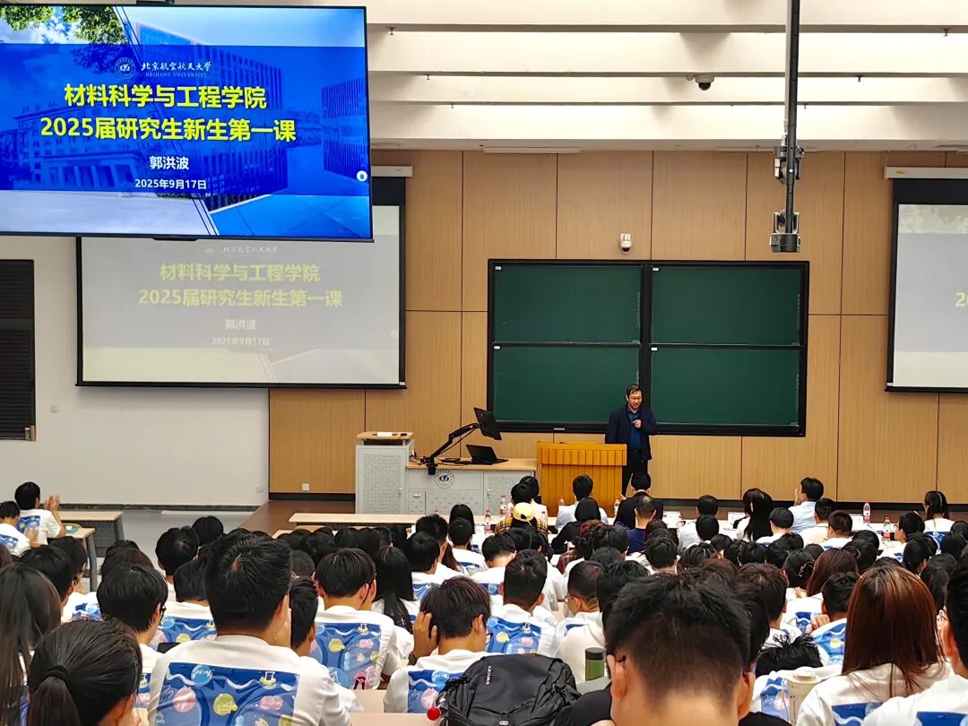学院党委书记郭洪波为全体新生讲授“开学第一课”。他回顾北航williamhill中国官方网站七十余年来的发展历程,从航空发动机高温材料突破到增材制造技术领先世界,一个个重大成果彰显了材料人在国家重大战略需求中的关键作用。